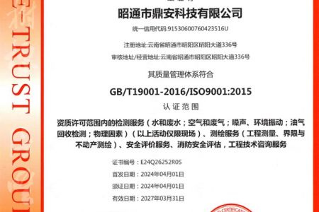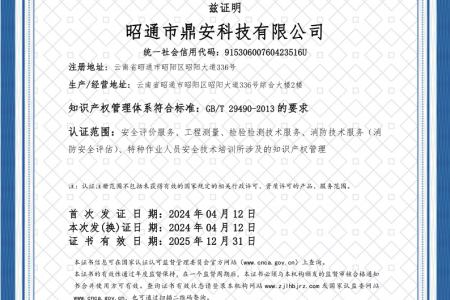 2003年11月10日,昭通市鼎安科技有限公司成立,初始主要從事第三方安全工程技術服務,經(jīng)多年運營,發(fā)展為多專業(yè)綜合科技平臺,為社會提供多種專業(yè)技術服務工作。 現(xiàn)公司注冊資金為1200萬元,公司法定代表人:毛衛(wèi)旭。公司主要業(yè)務:安全評價、安全標準化評審、安全工程技術服務;環(huán)境監(jiān)測、職業(yè)衛(wèi)生檢測、檢驗;法律訴訟及非訴訟服務;司法鑒定、固定資產(chǎn)投資項目節(jié)能服務;工程咨詢;工程測量測繪;安全教育培訓等。是安全生產(chǎn)服務、安全教育培訓機構(gòu),也是環(huán)境監(jiān)測和職業(yè)衛(wèi)生服務機構(gòu),同時也是綜合的檢測檢驗、綜合科技平臺服務機構(gòu)。多年來為公、檢、法、司、軍、警、海關、仲裁、安監(jiān)、工礦商貿(mào)企業(yè)、社會團體及個人提供多專業(yè)技術服務。